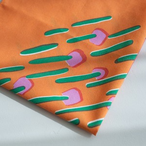 意図的にズレを起こした版のようなデザインが特徴的なまちだ美穂さんのハンカチの中でも、こちらはよりその手法が感じられるパターン。